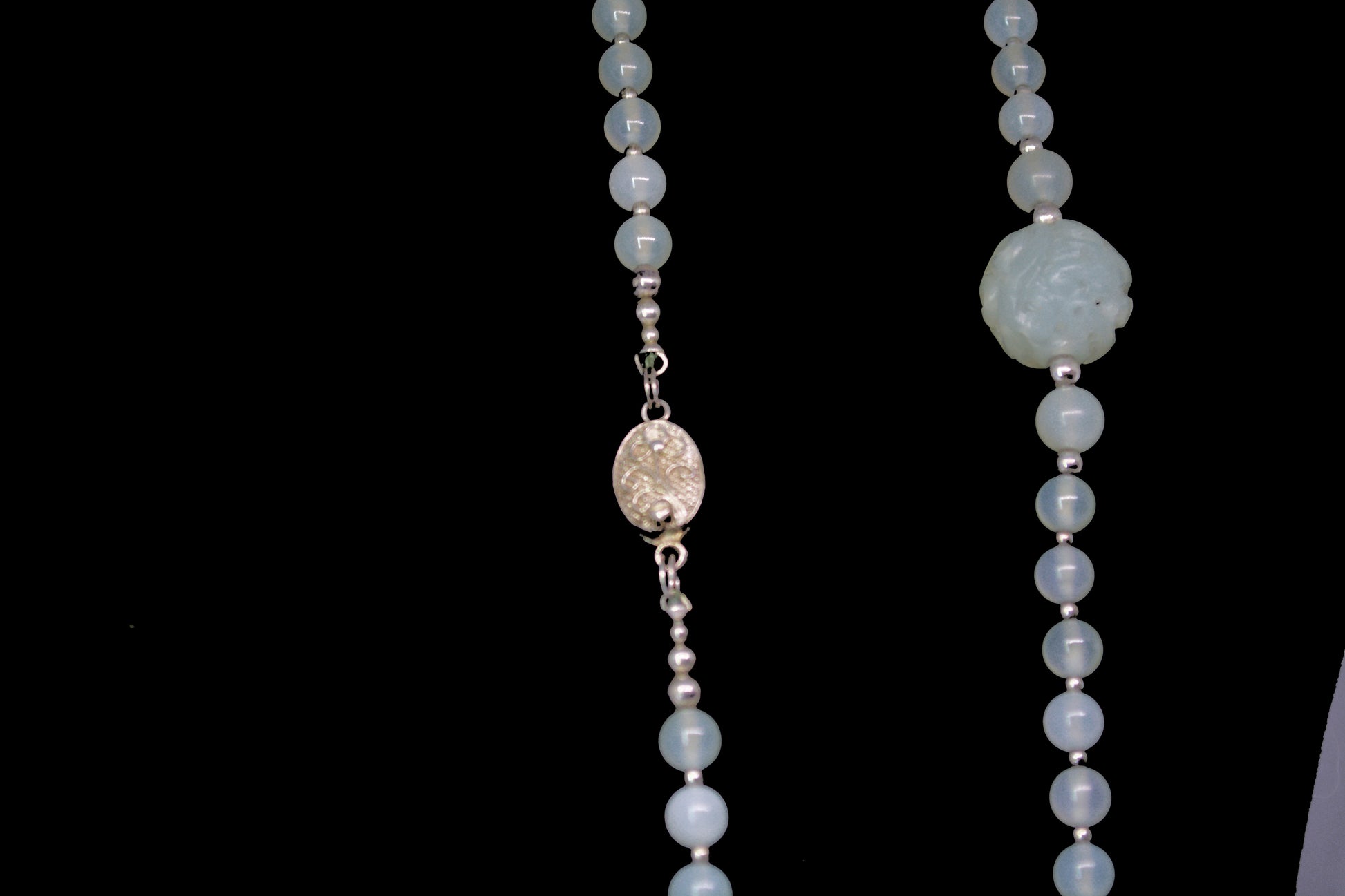 Introducing a necklace that's basically a wearable mood ring for your soul. Strung with luminous white moonstone beads and anchored by a stunning rose-carved centerpiece, this 18-inch beauty practically glows with an otherworldly charm. Silver-toned accents peek through between the 8mm stones, adding just the right amount of sparkle. Moonstone's got that whole mystical reputation—think intuition, femininity, and vibes that just *get* you. Perfect for anyone who believes jewelry should do more than just look pretty.