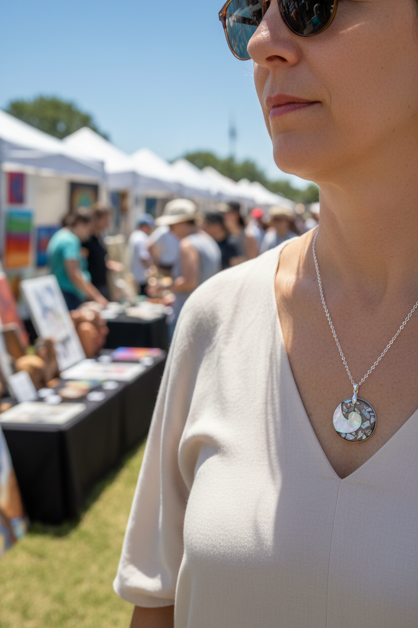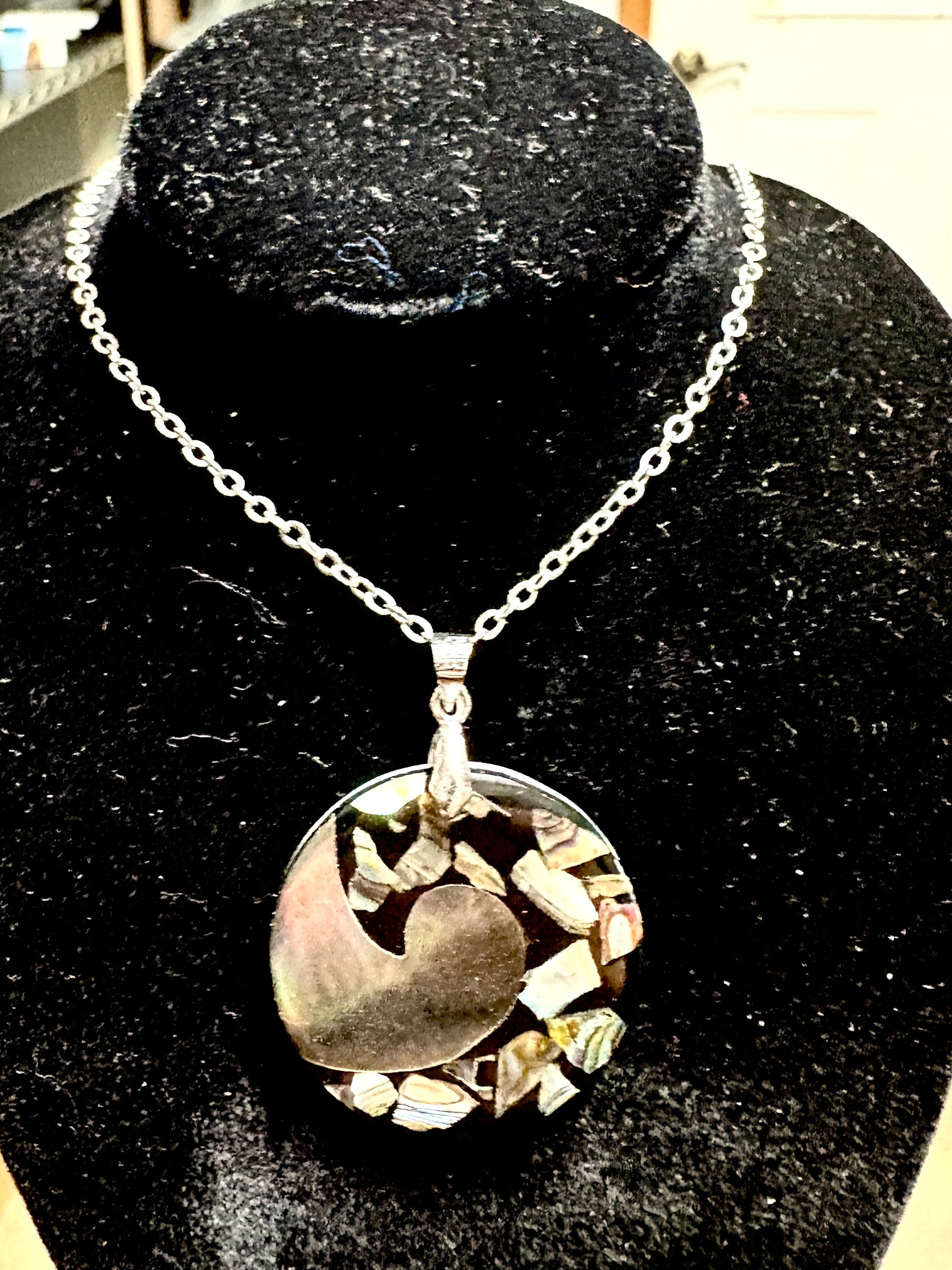 Catch the ocean's magic around your neck with this playful abalone pendant necklace. Featuring a mesmerizing wave-inspired round design that shimmers with natural iridescence, it hangs gracefully on an 18" chain. Perfect for adding a splash of coastal charm to any outfit.