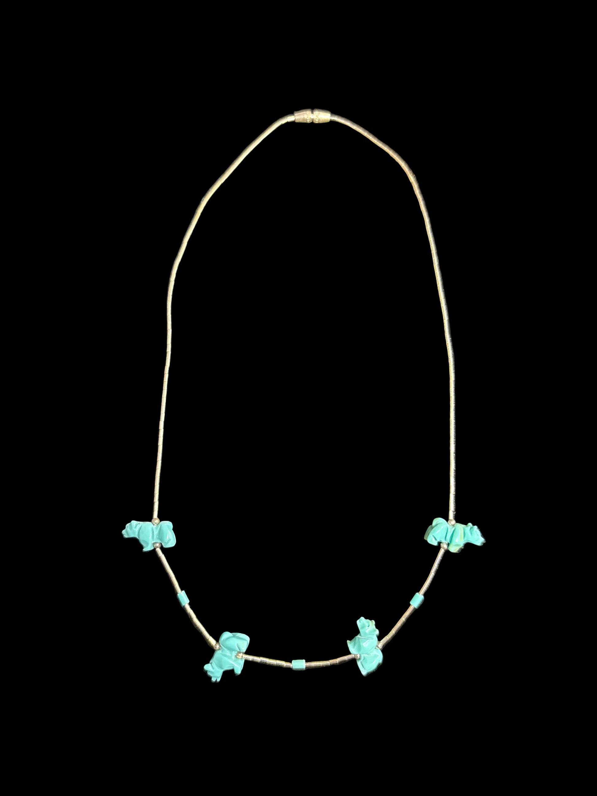 Meet your new spirit animal—literally! This charming sterling silver necklace features hand-carved turquoise bears that capture the wild, free-spirited essence of the Southwest. Crafted using authentic 925 silver with traditional Zuni and Navajo artistry, it's a wearable piece of boho magic. The 41cm beaded strand fastens with a secure barrel and torpedo closure, making it perfect for layering or wearing solo. Whether you're channeling your inner nature lover or gifting someone who marches to their own drum, this vintage-inspired treasure brings playful personality and genuine craftsmanship to any outfit.