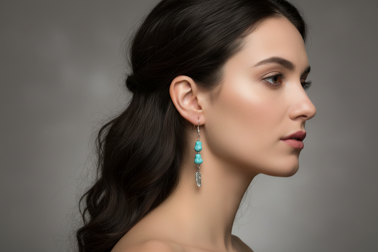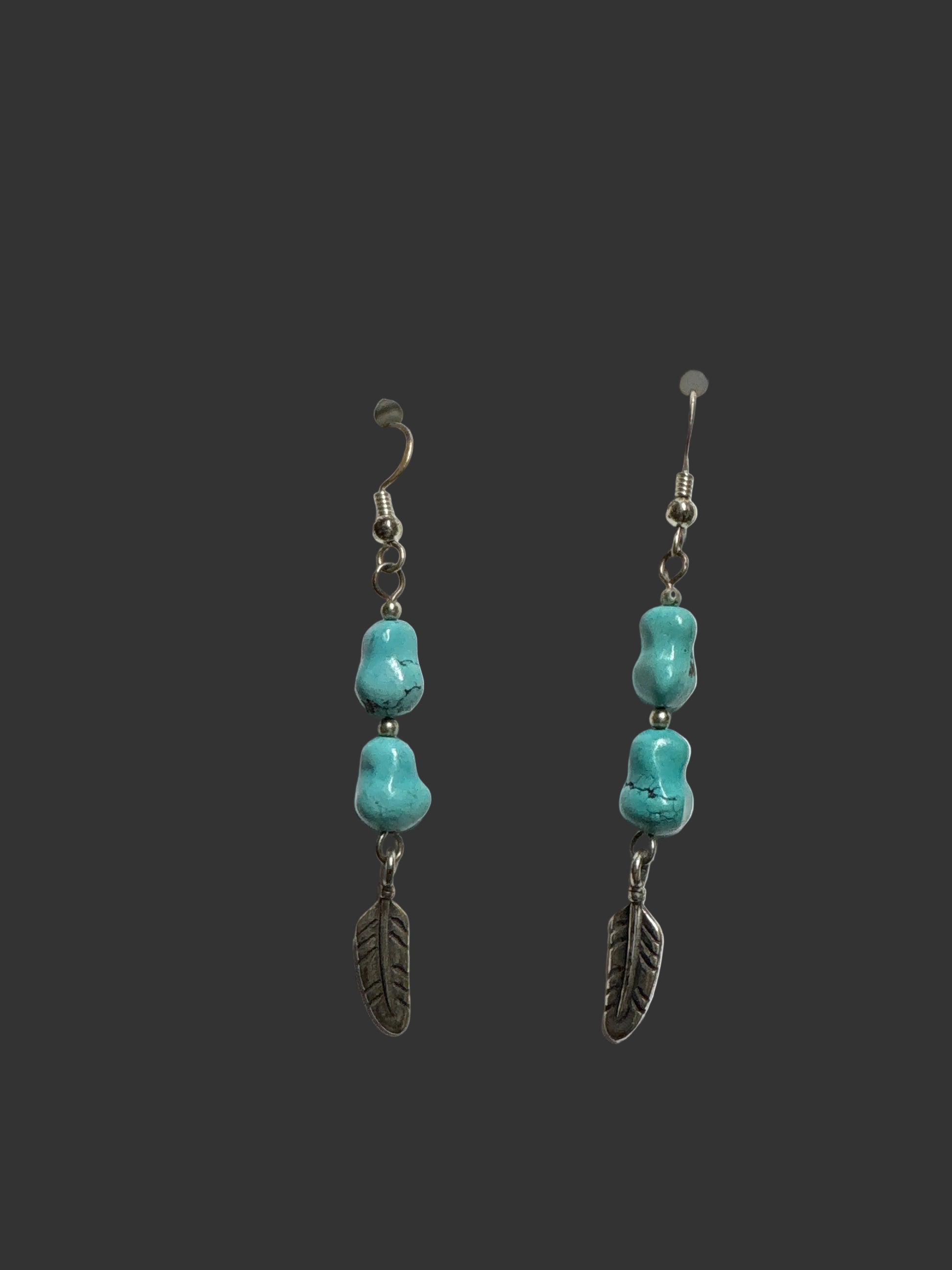 Embrace your inner free spirit with these enchanting turquoise drop earrings! Featuring authentic New Mexico turquoise nuggets paired with delicate sterling silver feather accents, these beauties dangle gracefully from classic silver hooks. Each sway captures that coveted southwestern charm, infusing your style with vibrant color and whimsical personality. Whether you're channeling boho elegance or just want to add some playful flair to your everyday ensemble, these genuine Navajo-inspired pieces deliver instant character and warmth to any look.