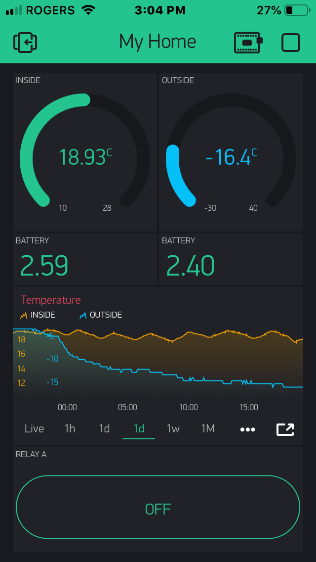 The sensor and transceiver are capable of working over a wide operating voltage (2-3.6V) making it suitable for battery power. Based on our calculations the sensor should last 6 months on a single CR2032 coin cellbattery with 5 minute transmission intervals (being confirmed through testing).